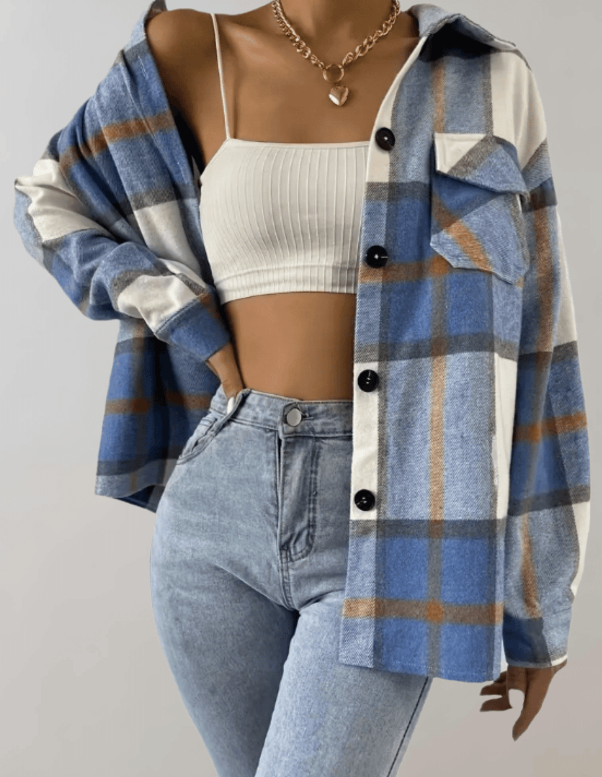 LP | Elegante cappotto da donna oversize a scacchi blu